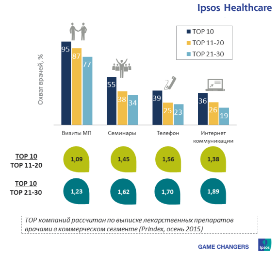 Отрыв компаний лидеров фарм.рынка в использовании новых форматов коммуникаций с целевыми аудиториями.