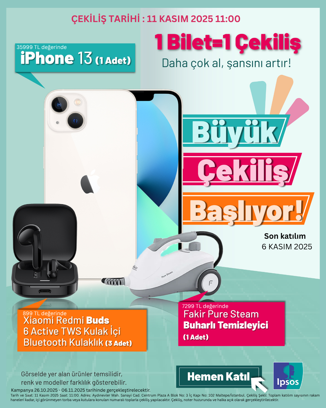 Kampanya, Türkiye genelinde Ipsos Panelist Türkiye adlı mobil uygulamasına kayıtlı üyelerin kullanıcı Ad-soyad ve şifreleri ile giriş yapıp (Ipsos Panelist Türkiye, tüketici davranışlarını incelemek amacıyla veri toplayan ve bireylerin alışveriş bilgilerini paylaşmalarına, anket doldurmalarına olanak sağlayan bir uygulamadır. Uygulama, uluslararası bir araştırma şirketi olan Ipsos tarafından yönetilmekte olup, kullanıcılar bu platform üzerinden gerçekleştirdikleri işlemler neticesinde puan kazanmaktadır.) çekilişe katıl linkinde yer alan katılım formunu ad-soyad, adres, telefon no. ve e-mail bilgileriyle doldurduktan sonra çekilişe katılmak için onay veren IPSOS Panelist üyelerine her 3000 puan için bir çekiliş hakkı verilmesine yönelik olarak yürütülecek ve çekiliş 11.11.2025 tarihinde saat:11:00'da (İkramiyeler; 1 Adet İphone 13 128 Gb Cep Telefonu, 1 Adet Fakir Buharlı Temizleyici, 3 adet Xiaomi Redmi Buds 6 Active TWS Kulak İçi Bluetooth Kulaklık) Aydınevler Mah. Sanayi Cad. Centrum Plaza A Blok No:3 İç Kapı No: 102 Maltepe/İstanbul adresinde yapılarak karşılığı nakit olmayan piyango düzenlenecektir. Ipsos Panelist Türkiye uygulaması üzerinden yapılan katılımların ücretsiz olmakla birlikte çekilişe katılım için onay veren üyelerin 3000 puanı silinecek ve her 3000 puan için 1 çekiliş hakkı kazanılacaktır. Çekilişe katılmak için onay vermeyen üyeler çekilişe dahil edilmeyecek ve puanları silinmeyecektir. Bir kişi birden fazla ikramiye kazanamayacaktır. Ipsos çalışanları ile 18 yaşından küçük olanlar düzenlenen piyango ve çekilişe katılamayacak, katılmış ve kazanmış olsalar dahi bu ikramiyeleri verilmeyecektir. ÖTV ve KDV hariç diğer yasal yükümlülükler talihlilere aittir. Katılımda sunulan tüm bilgilerin doğruluğu ve yeterliliğinin ispatı katılımcının sorumluluğundadır. Kampanya duyurularında kullanılan ikramiye görselleri ile verilecek ikramiyenin renk ve özellikleri farklılık gösterebilir. Çekiliş, Aydınevler Mah. Sanayi Cad. Centrum Plaza A Blok No:3 İç Kapı No: 102 Maltepe/İstanbul adresinde noter huzurunda herkesin katılımına açık olarak gerçekleştirilecektir. Çekiliş sonuçları 13.11.2025 tarihinde Posta gazetesinde duyurulacaktır. Asıl talihlilere; çekilişten hemen sonra kazandıkları ikramiyeler ile bu ikramiyeleri hangi tarihe kadar başvurarak teslim alabilecekleri, aynı tarihte yedek talihlilere; asıl talihlilerin süresinde başvurmamaları halinde ikramiyelerin teslim edileceği, taahhütlü posta yoluyla bildirilecek, asıl talihlilerin ikramiyelerini belirtilen süre içinde başvurarak teslim almamaları halinde yerine yedek talihlilere ikramiye gruplarına göre ikramiyeler teslim edilecektir. Talihlilerden teslim belgesi ile kimlik fotokopileri alınacaktır.