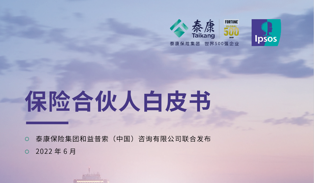 泰康携手益普索Ipsos联合发布国内首份《保险合伙人白皮书》暨绩优代理人职业发展信心指数